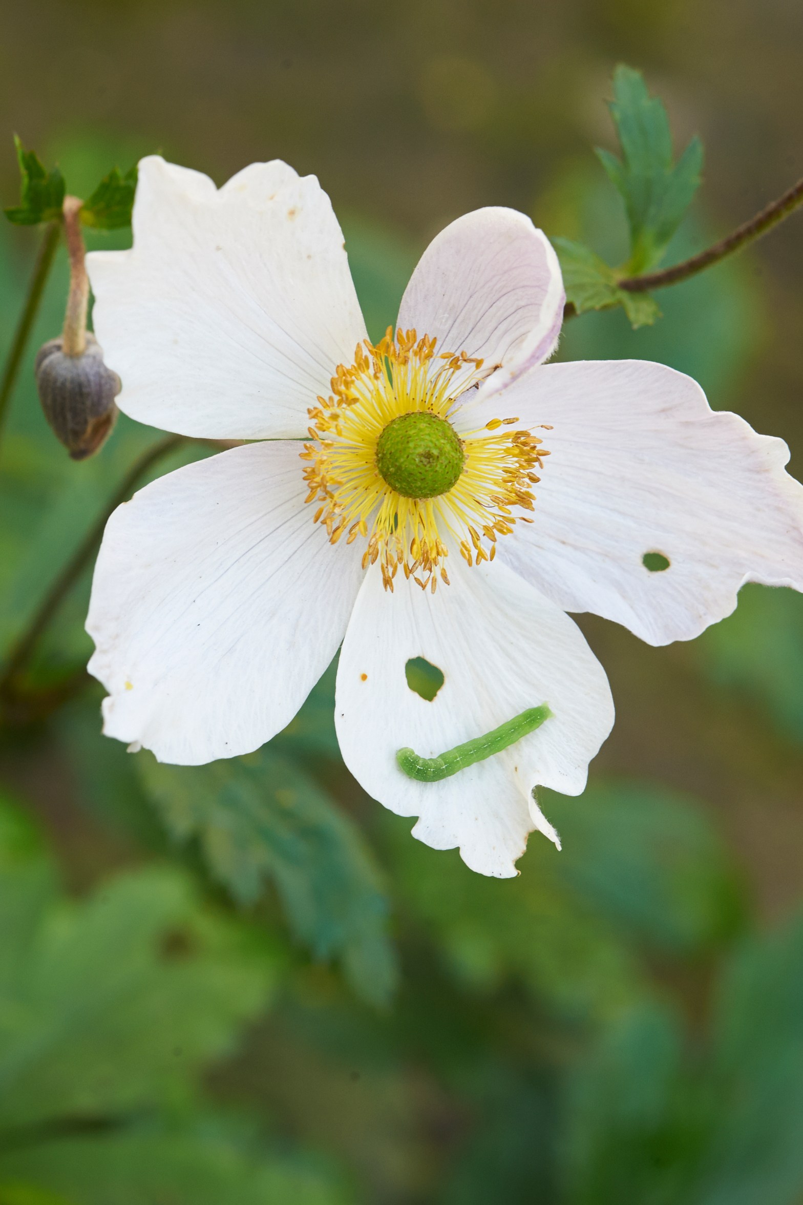 Niet alle rupsen kijken uit naar een fris blaadje. Deze vind de bloemblaadjes veel interessanter…