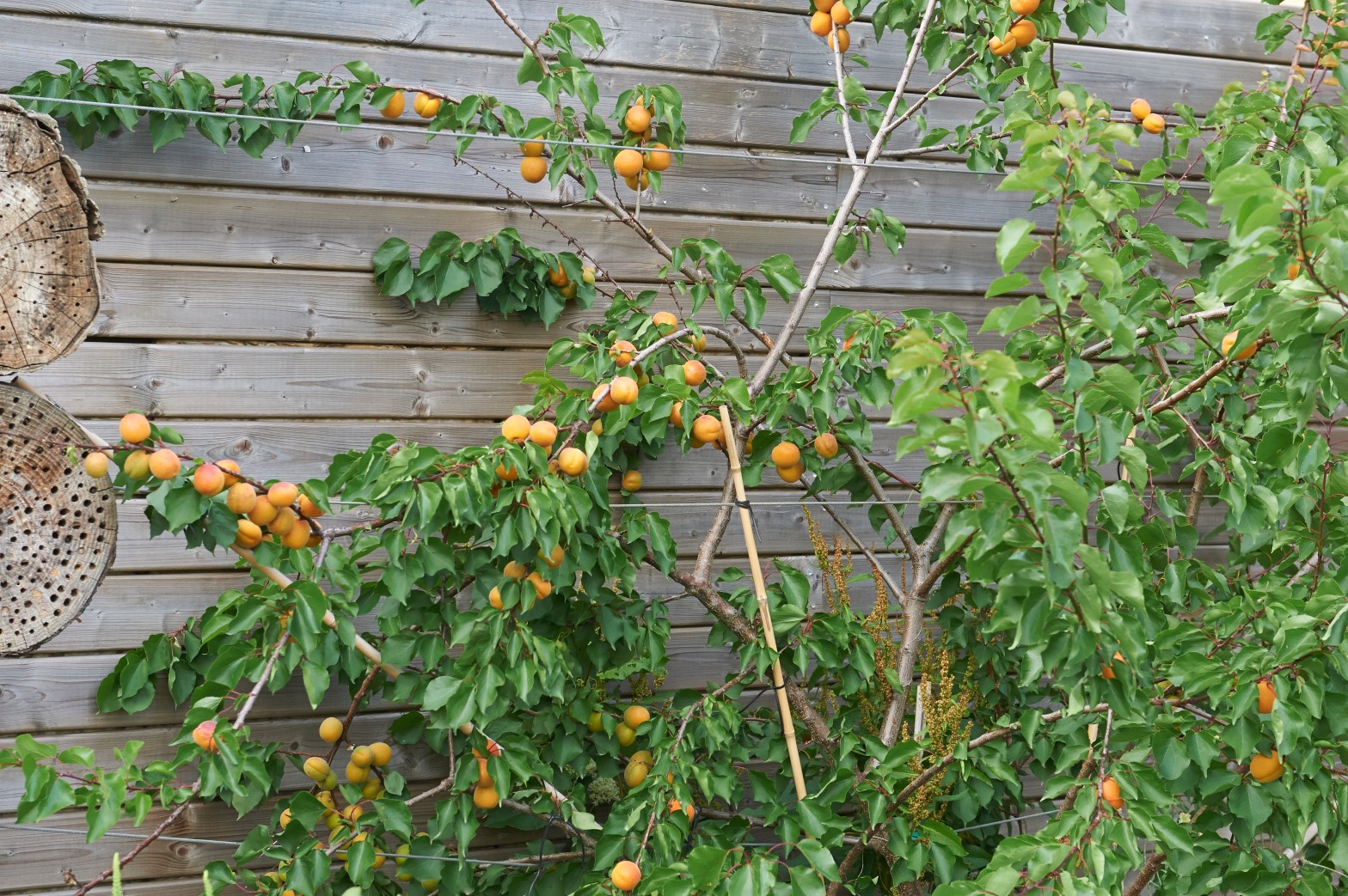 De abrikozen beginnen nu te rijpen. Met een zachte winter kan je dus een flinke oogst bekomen! Tomcot is nu al rijp, Kuresia (met een wat bescheidener oogst) zal over een week of twee volgen denk ik.