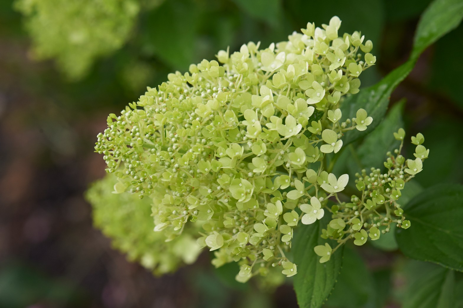 De bloemhoofden van de Hydrangea paniculata beginnen open te komen, wat mij betreft zijn de bloemen nu op hun mooiste. Deze bloemen verkleuren van crèmegroen over roomwit naar roze, om dat lichtbruin te verdorren.