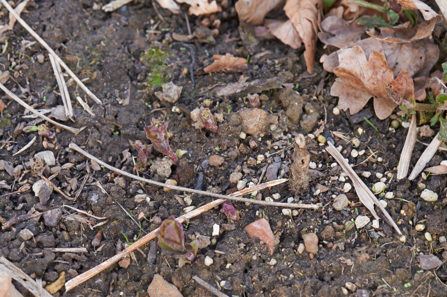 Een ieder jaar wederkerend ritueel, het “lentestaren”. Op een bepaald ogenblik begin ik iedere dag rond te lopen door de tuin, om te kijken of de planten al uitlopen. Vooral bij redelijk recent aangeplant plantgoed neemt dat hier soms hilarische proporties aan, maar ’t is sterker dan mezelf. ’t Is ook extra fijn wanneer je weer een extra plant ziet schieten. Dit week-end was dat de Nepeta kubanica, die ook duidelijk nog op zoek is naar doorgroeimogelijkheden. Indien een plant niet begint te groeien, durf ik wel eens wat grond weg te krabben, op zoek naar een teken van leven.