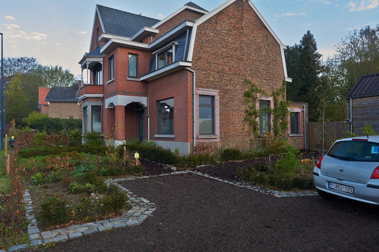 De voortuin staat er al een pak groener bij. De klimroos doet haar best om dit jaar over het dak te groeien. Veel kleur is er hier nog niet te zien, tenzij verschillende groentinten.