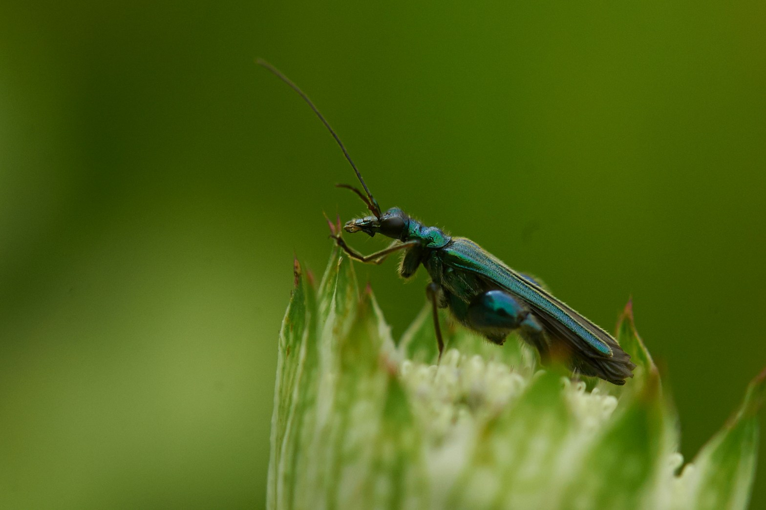 En in het Engels noemen ze hem Thick legged flower beetle. Het exemplaar op je foto is een mannetje, want alleen die hebben de dikke billen die de soort zijn naam geeft.