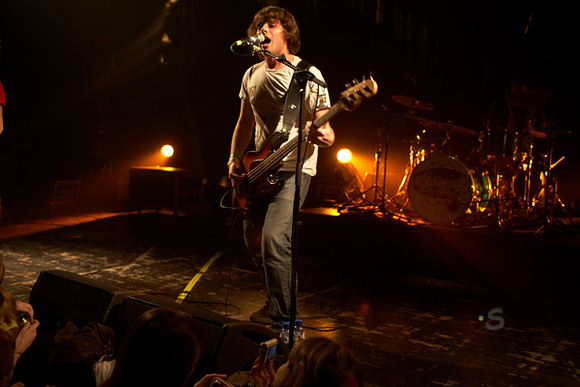 Op de foto de frontman van de groep ‘The Automatic’. Eén van de betere optredens die ik dat jaar zag. Op voorhand kende ik ze van één nummer, maar ook hun andere songs waren best te pruimen. De toetsenist van de bende had duidelijk zijn pilletjes vergeten te nemen die avond, en leek een beetje op ’t eekhoorn uit ‘Over The Hedge’, na het drinken van het blikje Coca-cola dan wel te verstaan.