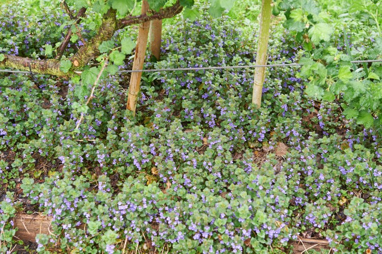Hier ook hondsdraf als toffe bodembedekker. Hij stond ooit ook zo overvloedig als op je eerste foto. Maar na wat intomingen van mijnentwege, weeft hij zich nu mooi tussen de andere bodembedekkers tussen. Prachtig om te zien, die lieve kleine bloempjes overal tussen!