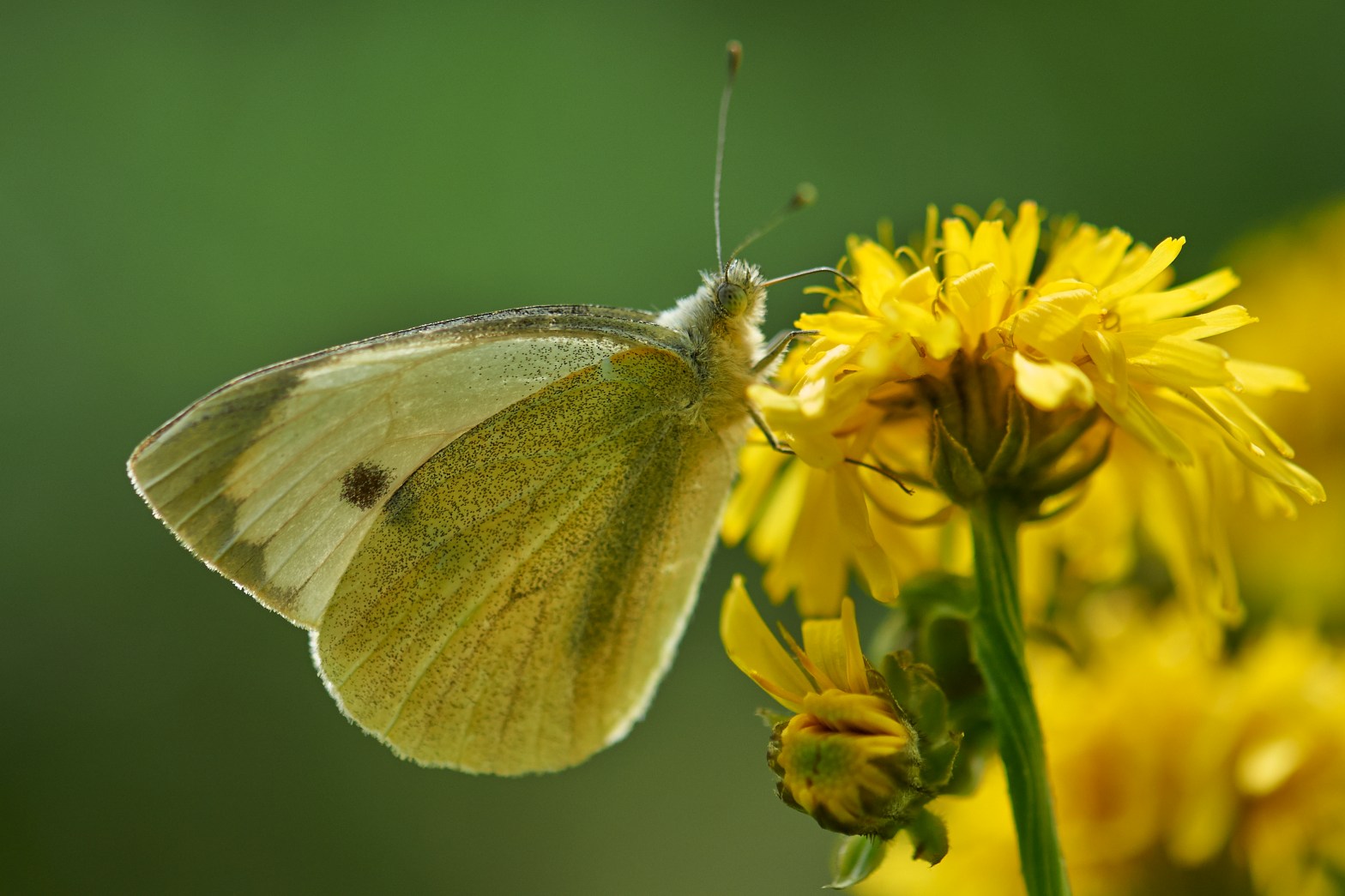 Een banale vlinder, het groot koolwitje? Dan toch een erg mooie banale vlinder als je het mij vraagt. Hier foeragerend op gele morgenster.
