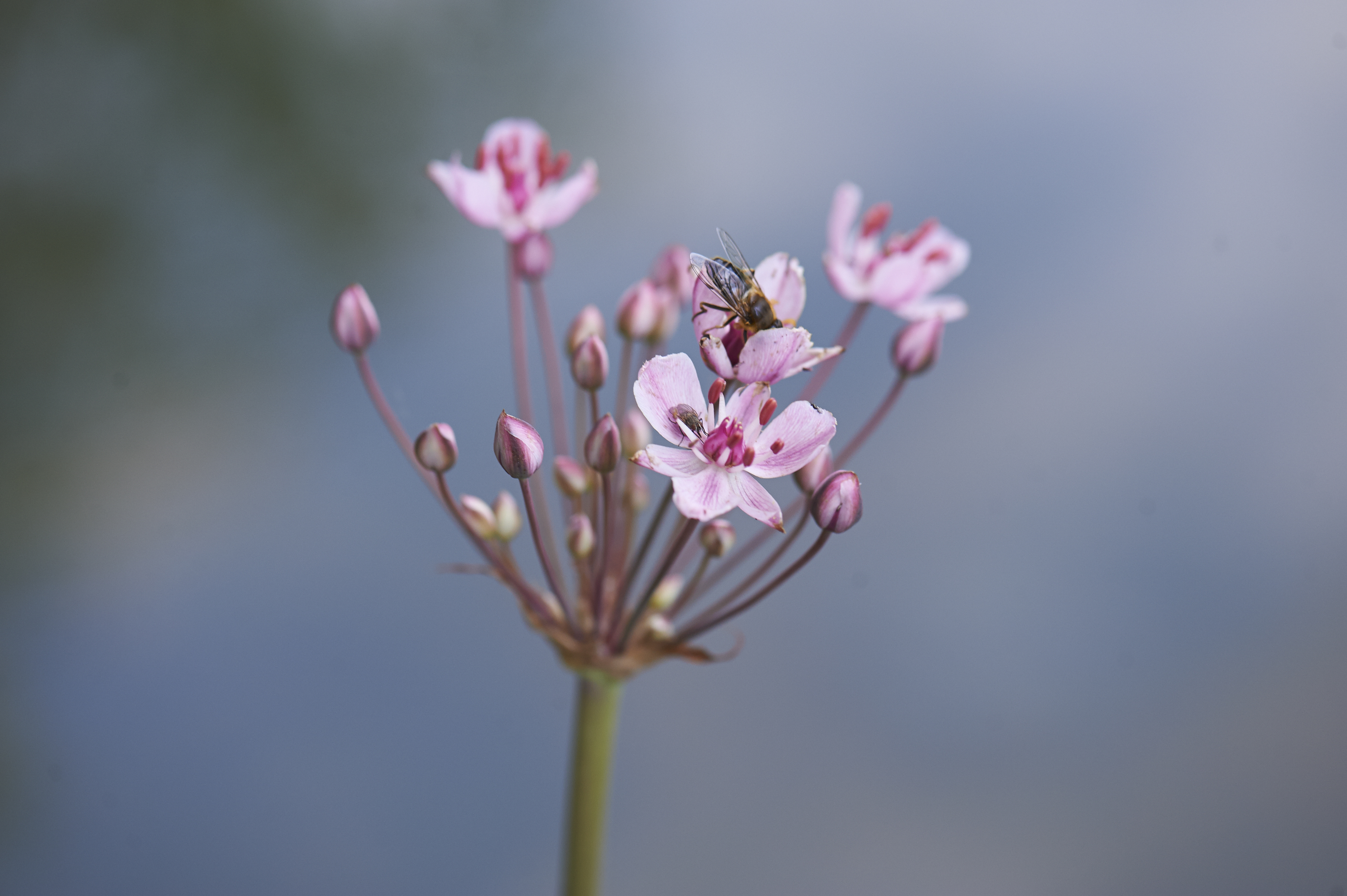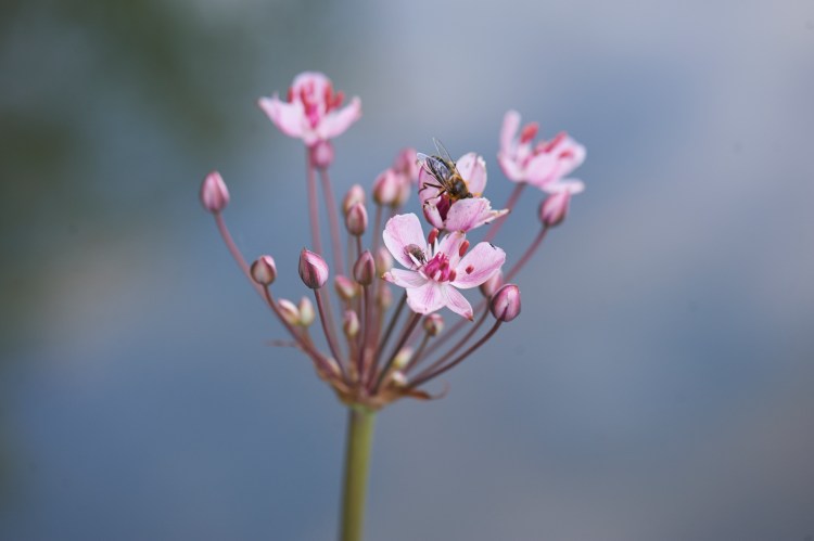 Ik had hier al eerder aangegeven, ik wou absoluut Butomus umbellatus (zwanebloem) in mijn vijver tot bloeien krijgen. Het is wat mij betreft de mooiste inheemse waterplant maar een plant die het vaak slecht doet in de vijver, omdat de plant graag in rijke grond staat, in leem of kleigrond en dus niet in substraat of te kleine bemeten plantenmandjes. De planten zijn hier dit jaar op een 50-60 cm hoogte blijven ‘steken’, de bloemstengel is 70 cm hoog. In theorie kan die stengel meer dan 100 cm hoog groeien.