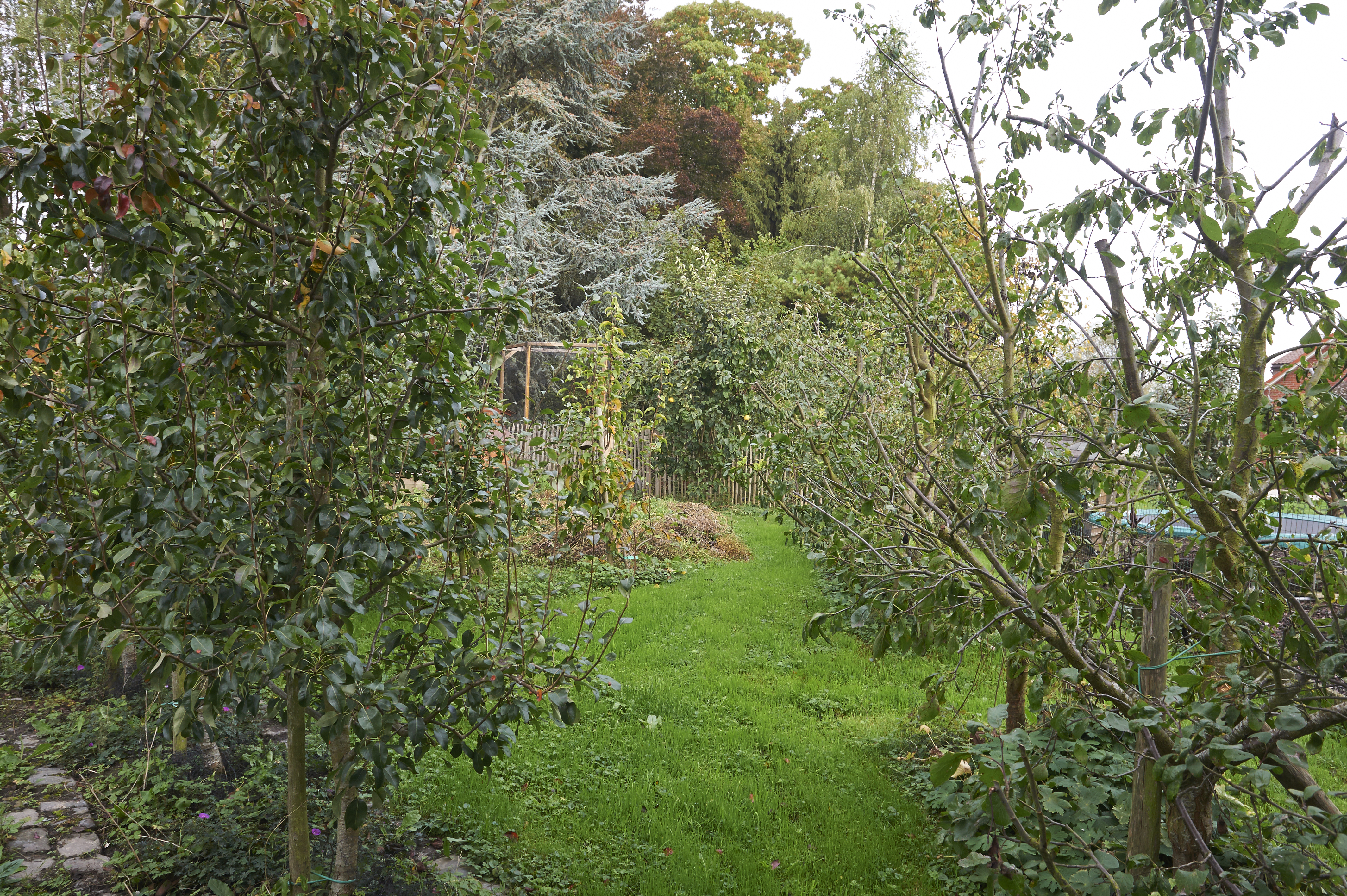 De pruimenhaag werd een maand geleden flink gesnoeid. Verder ook hier niet veel te vertellen.