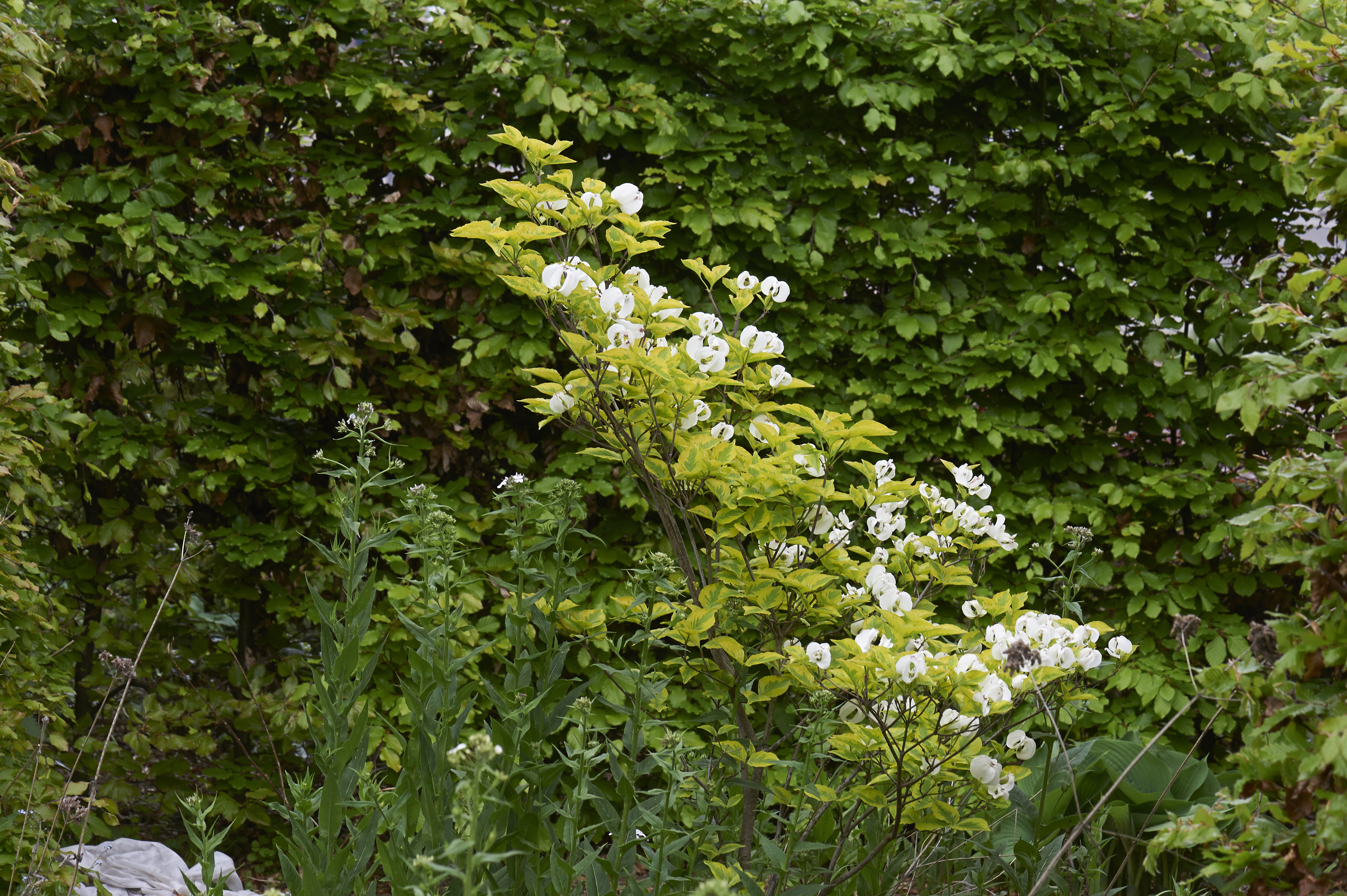 Toen ik enkele jaren geleden deze Cornus florida ‘Rainbow’ kocht, was ik een beetje bezorgd of deze bontbladige kornoelje het wel zou redden op mijn zware grond. Maar ook deze plant is hier ongeveer verdubbeld qua volume. Alleen jammer dat de bloemen niet helemaal openen. De bonte bladeren en de witte bloemen contrasteren mooi met … Meer lezen over Cornus