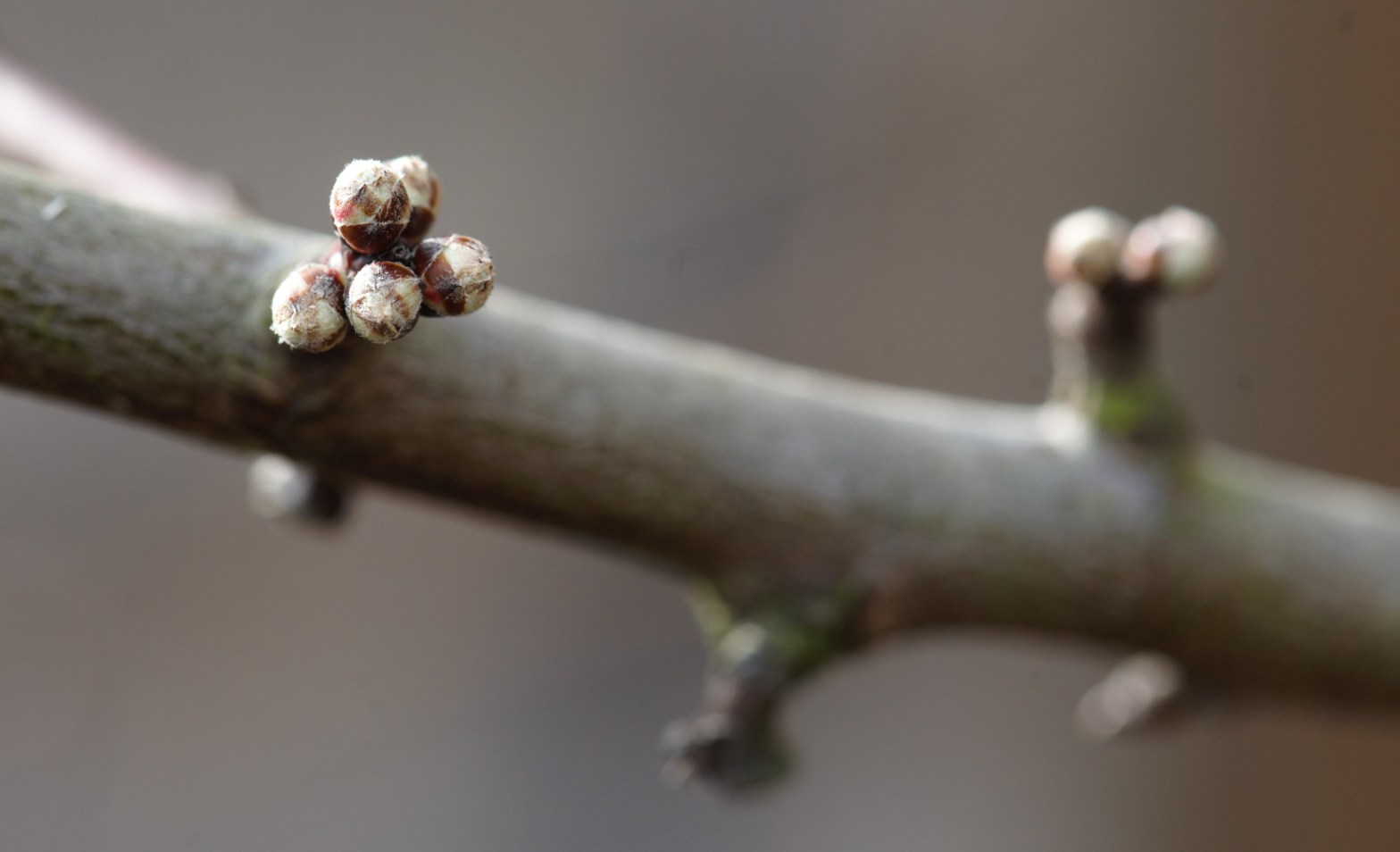 De eerste bloemetjes op de Edgeworthia beginnen zich te openen. De bloemtrosjes zien er nu echt onwezenlijk uit.