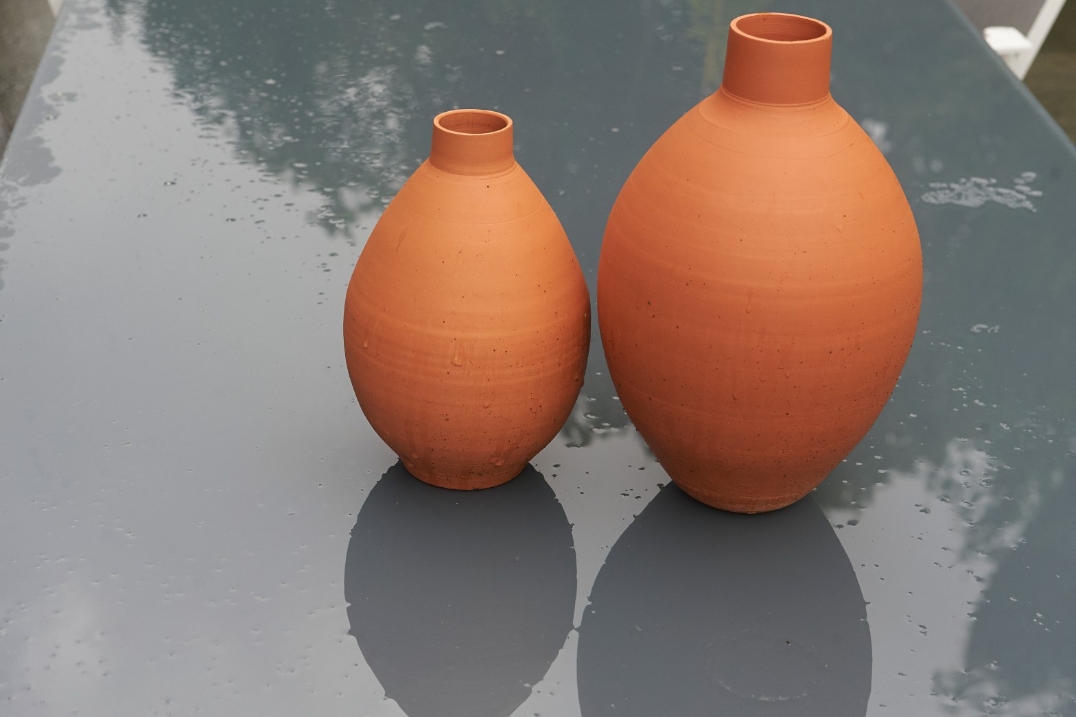 Maar ik wil dus nog minder water verbruiken. Vorige week zag ik op internet informatie over Olla’s. Dat is een eeuwenoude techniek om water te geven die al 4000 jaar zou gebruikt worden, in onder meer het oude Romeinse rijk, in Noord-Afrika en China. En terwijl ik eerst moeite had om een plek te vinden waar ik me zo’n pot kon aanschaffen vond ik enkele dagen een lokale pottenbakkerij die ze dus ook maakten.