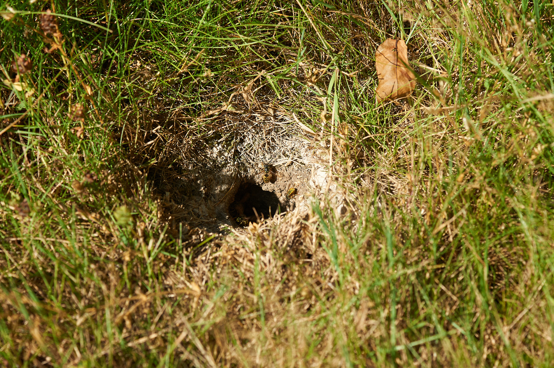 Net voor de eco-tuindagen merkte ik een wespennest op. Deze wespen gebruikten een oude muizengang, in het gazon op 5-6m van het terras. Ik spande het nest af met drie bamboestokken, wat touw, en een duidelijke waarschuwing. Ik had zelf niet direct de intentie om dat nest te verdelgen, omdat ik tot dan toe nogMeer lezen over “Wespennest”