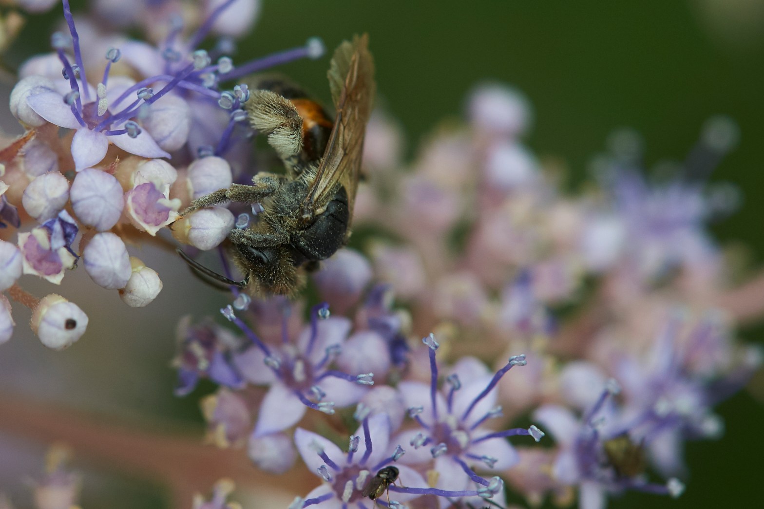 Deze Andrena rosae zag ik hier gisteren foerageren op Hydrangea aspera ‘Hot Cholocate’. Deze bij heeft het statuut ‘zeldzaam’ op waarnemingen.be, er zijn dit jaar 344 waarnemingen ingegeven. Ze werd pas in 2009 voor het eerst waargenomen in Vlaanderen. Het is altijd leuk om nieuwe beestjes in de tuin te spotten. Of die dan zeldzaamMeer lezen over “Roodrandzandbij”