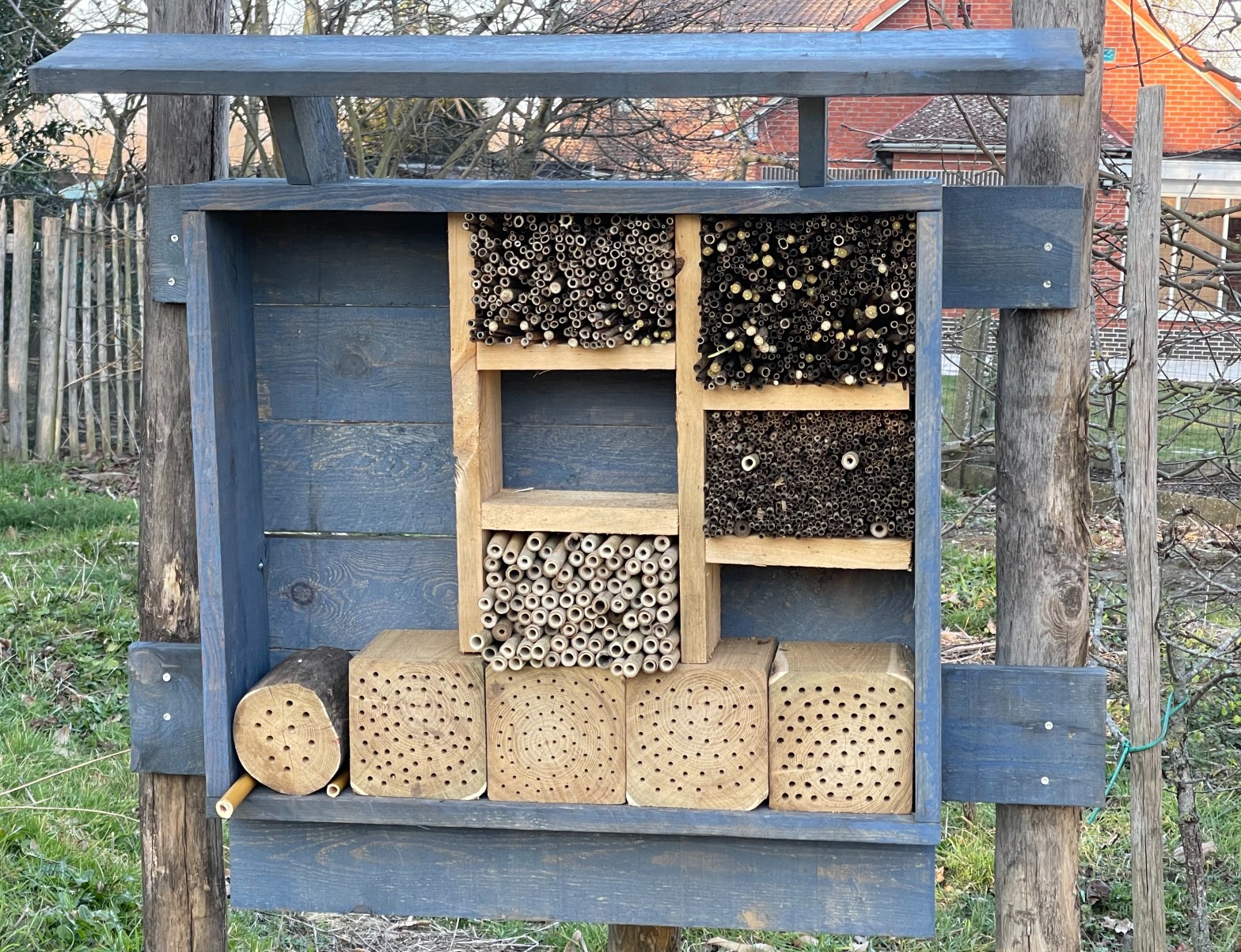 Ik schreef vorige week al over een eerste nieuw insectenhotel dat af was. Maar er zijn er nog in aanbouw. Dit tweede hotel staat in de nectartuin en heeft een iets opvallender kleurtje gekregen. Dit is wel een aanzienlijk kleiner exemplaar, waarin ik redelijk veel plaats voorzie voor klokjesbijen, tronkenbijen en maskerbijen door veel rietstengelsMeer lezen over “Insectenhotel… nummer twee”