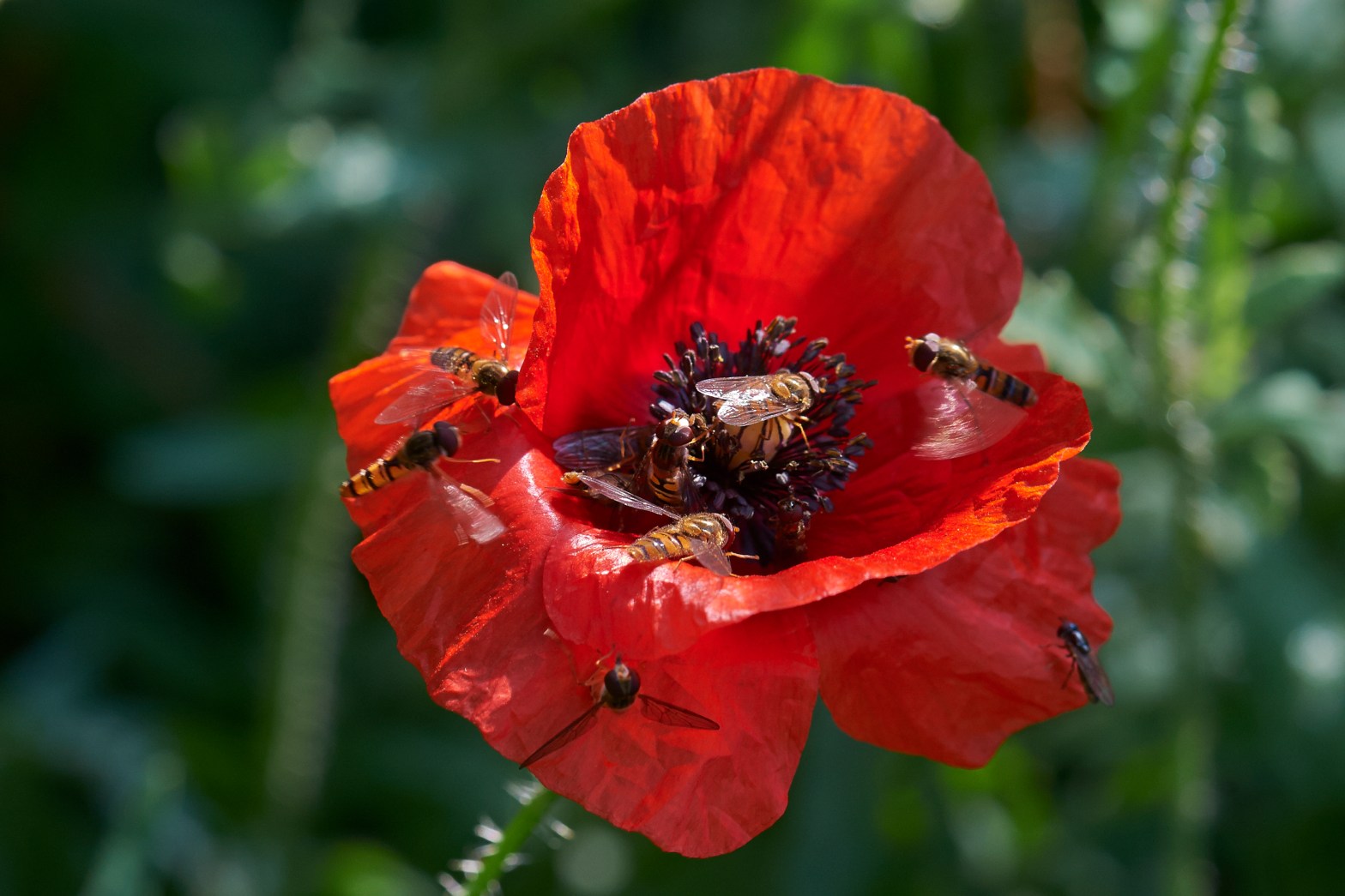 dat het met de bestuiving van deze klaproos wel snor zit. Iedere ochtend zie ik hetzelfde tafereel bij alle klaprozen in bloei.