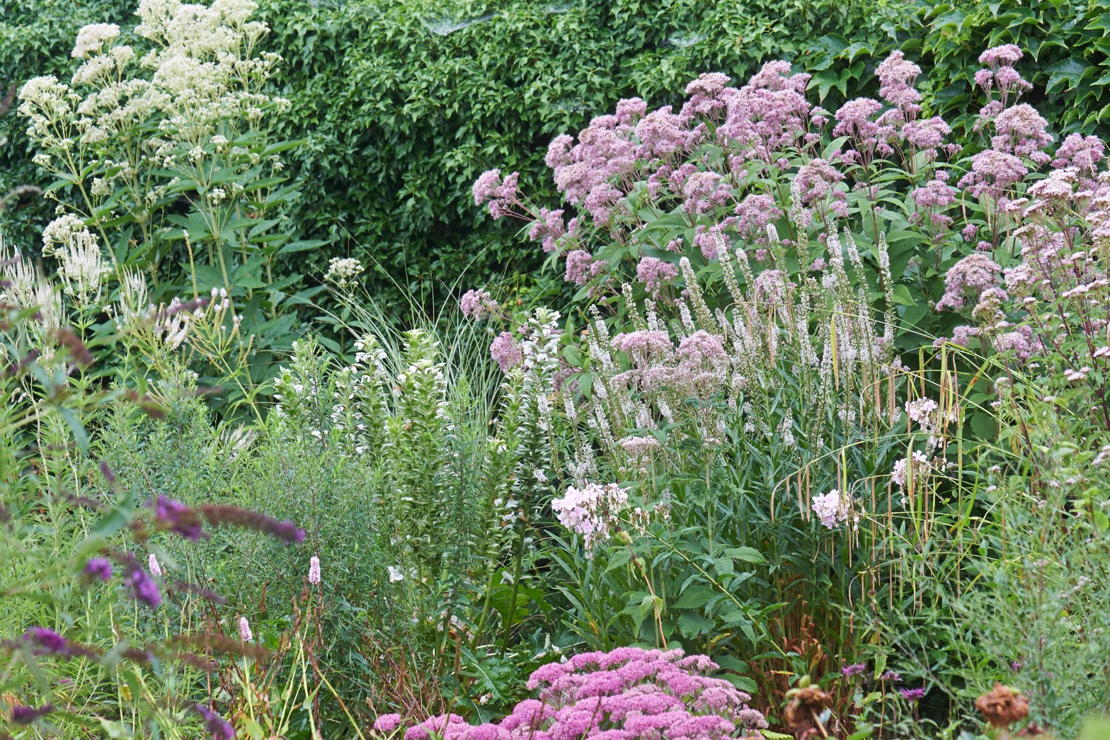 Ik hou wel van een wat hoger groeiende plant. ’t Hoeven niet allemaal bodembedekkers zijn in de tuin. Achteraan in de borders staan dan ook enkele hoogvliegers, ook op esthetisch vlak. Op de foto hierboven zie je drie grote groepen Eupatorium, links de witte Eupatorium maculatum album die makkelijk 250 cm hoog is, in ’t midden achteraan deMeer lezen over “Wolkenkrabbers”