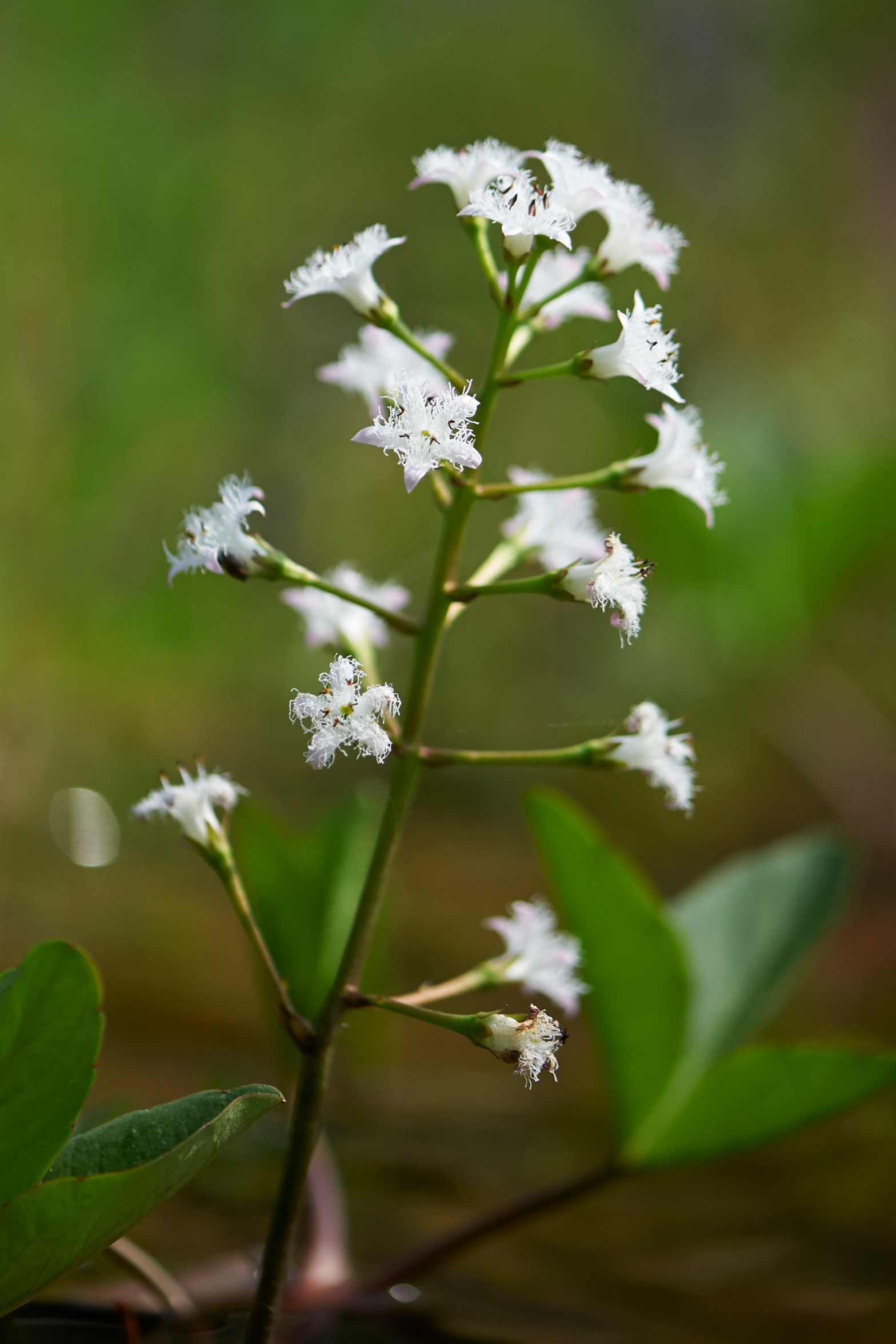 Het waterdrieblad staat hier nu in bloei. Deze prachtige waterplant voelt zich duidelijk in haar nopjes in de leem.
