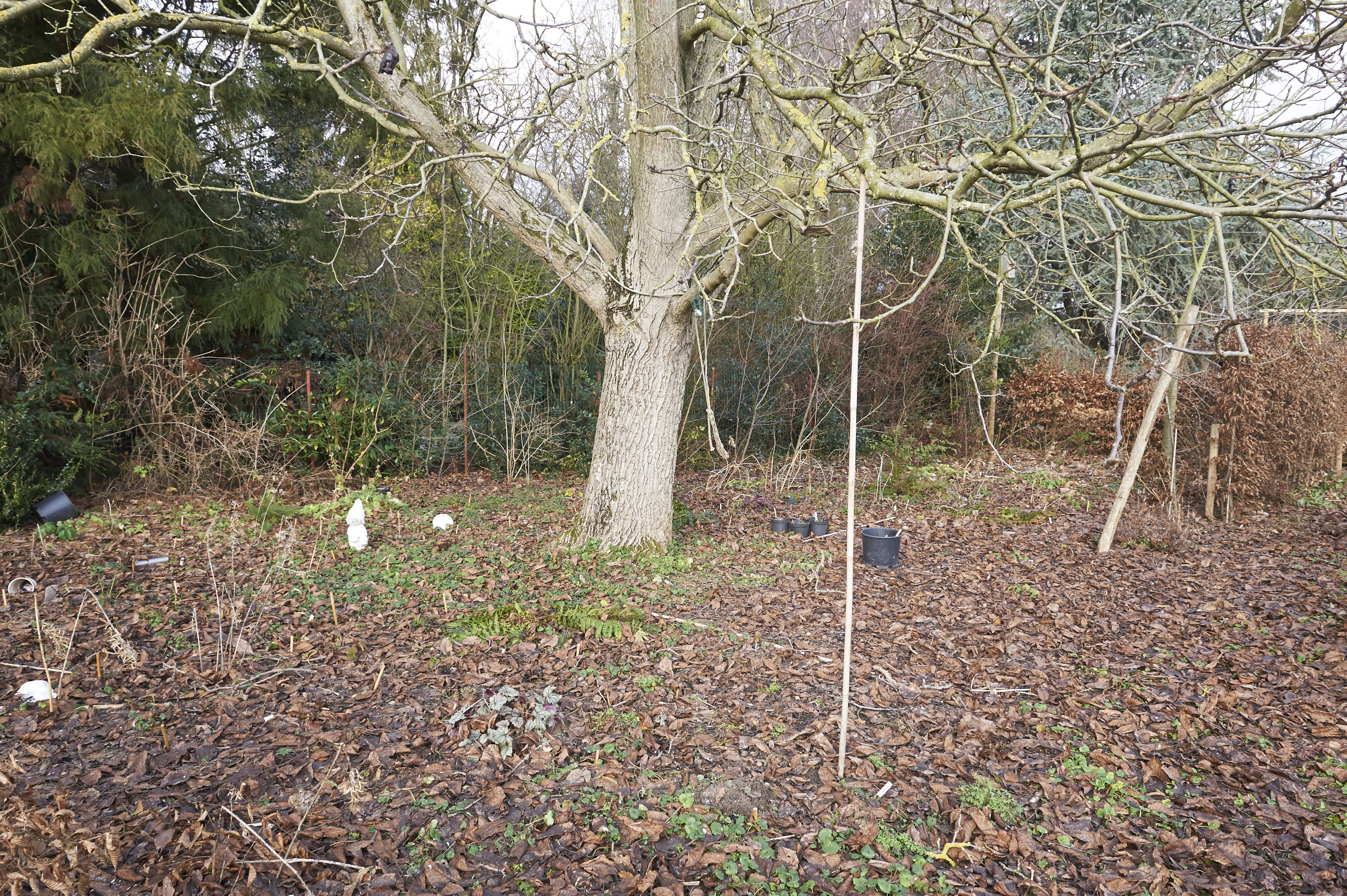 Dit stukje tuin ziet er nog steeds saai groen & bruin uit.