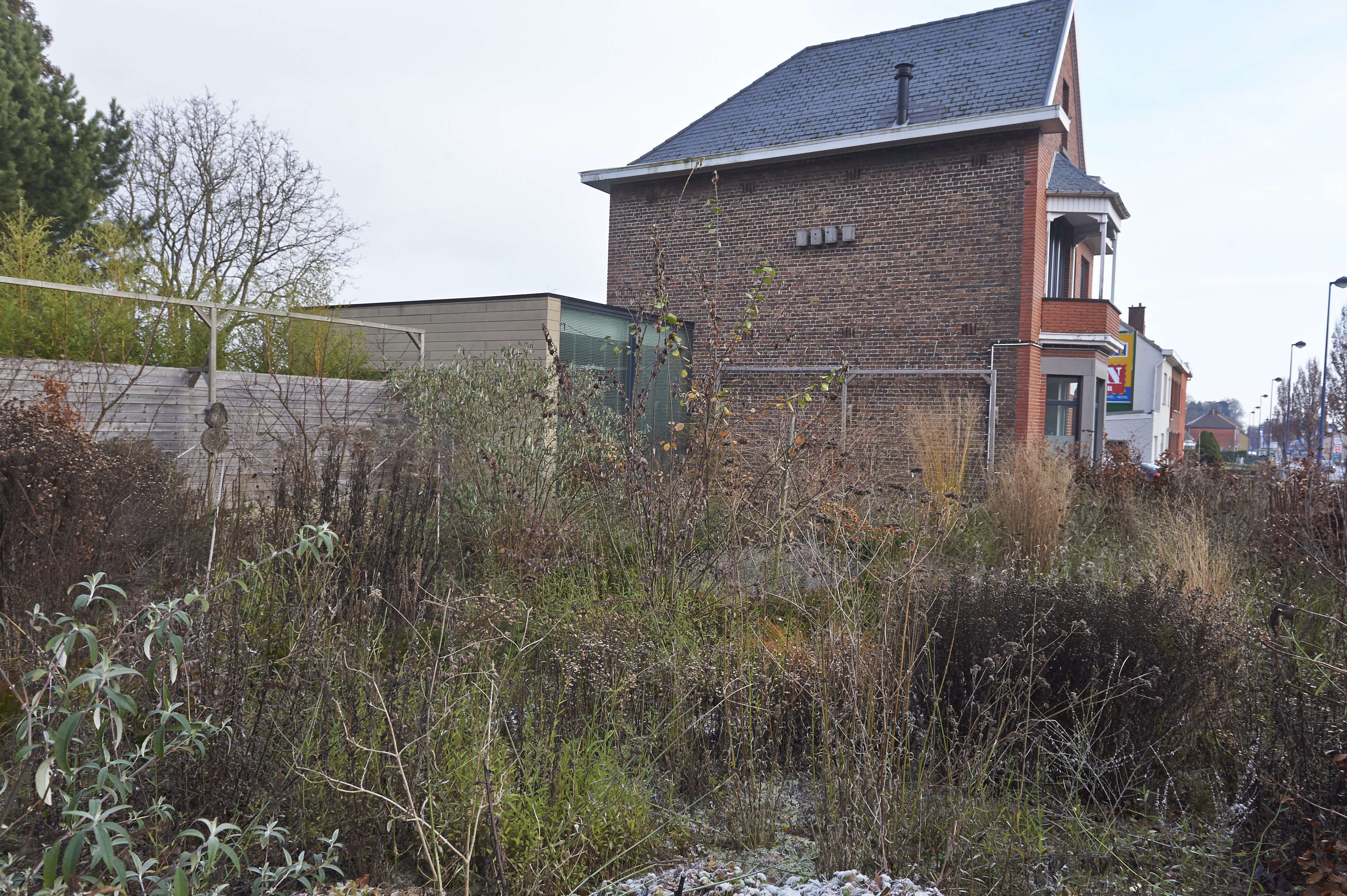 De nectartuin is nu helemaal grauw. Vooraan links zie je een vorig jaar aangeplante vlinderstruik die me volgend jaar waarschijnlijk verplicht om de beeldhoek lichtjes te wijzigen.